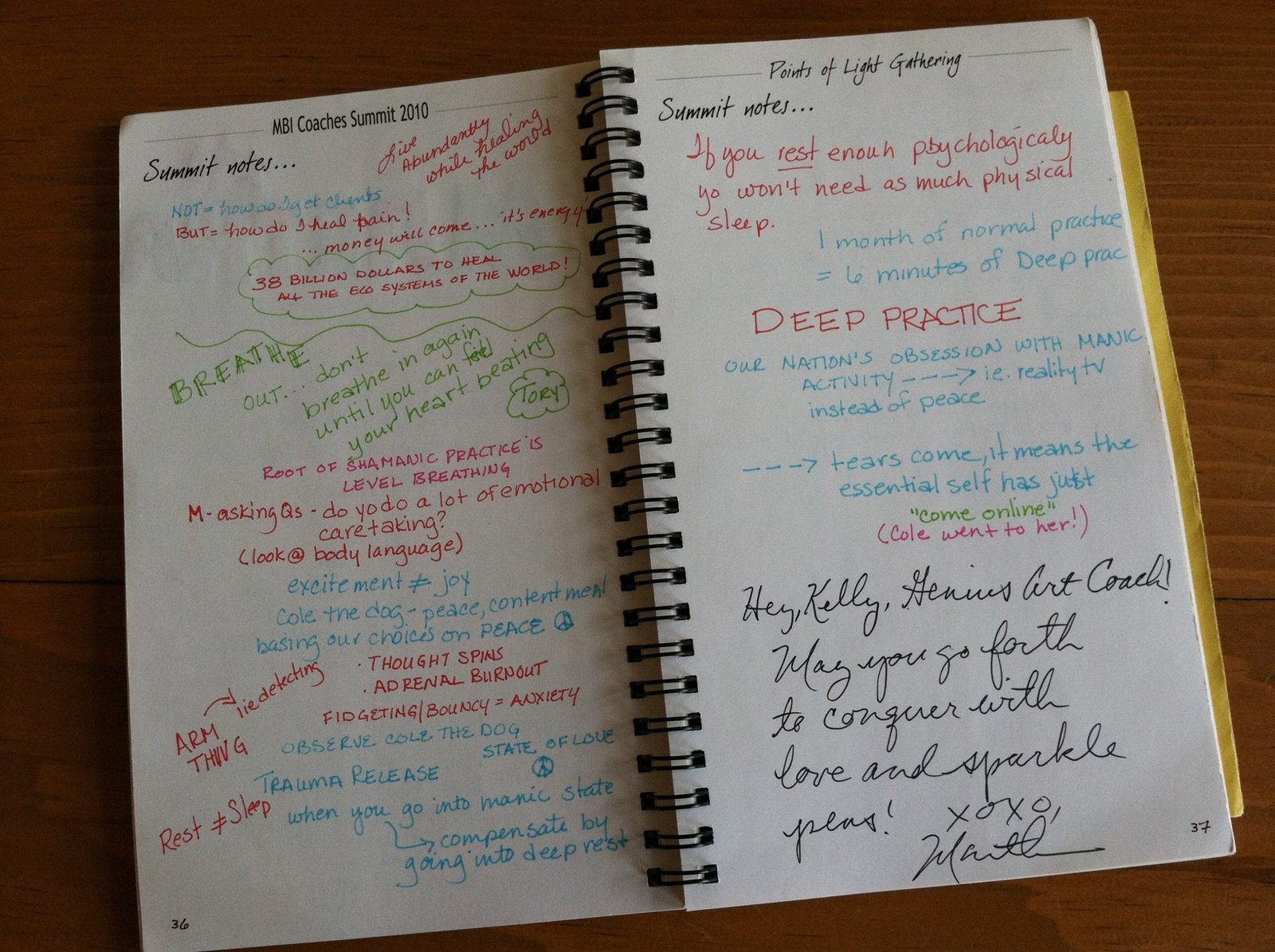 I learned about visual journaling from Life Coach Kelly Pratt and the program book/journal she generously contributed to the swag bags at the 2010 Martha Beck Coaches’ Convention.